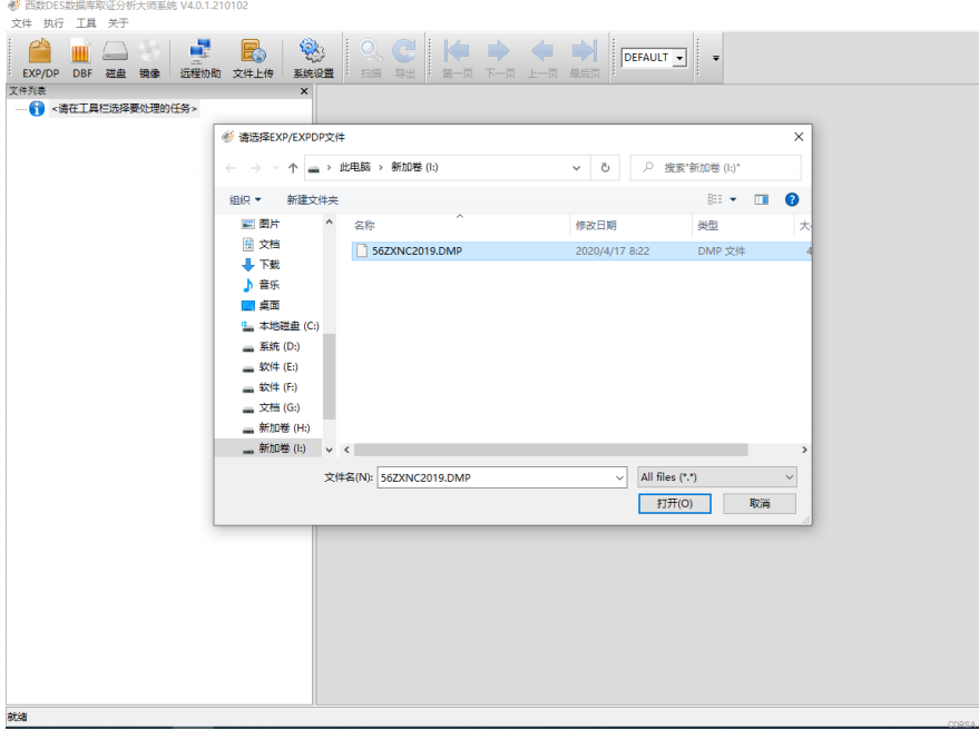 1、新增對NTFS文件系統中的文件掃描,能分析出其中的DBF、EXP、EXPDP等類型的文件。